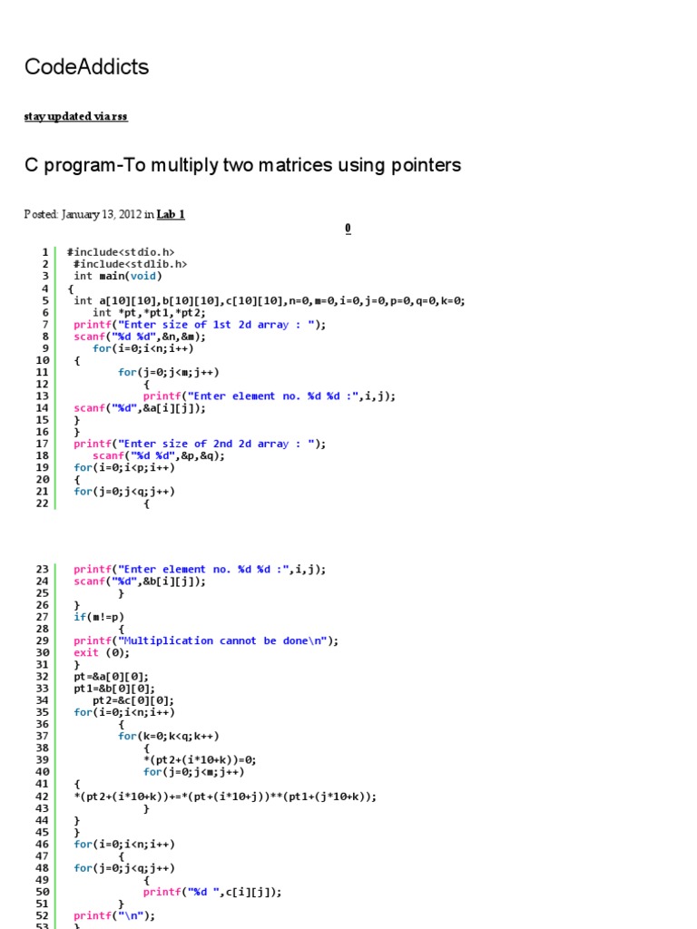 C Program For Matrix Multiplication In C With Without Pointers Qa With Experts