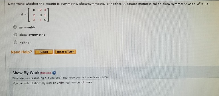 Determine If The Matrix Is Symmetric Skew Symmetric Chegg Com