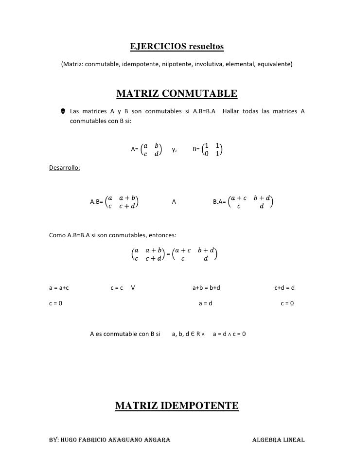 Ejercicios Resueltos De Matrices Matrices Conmutable Idempotente