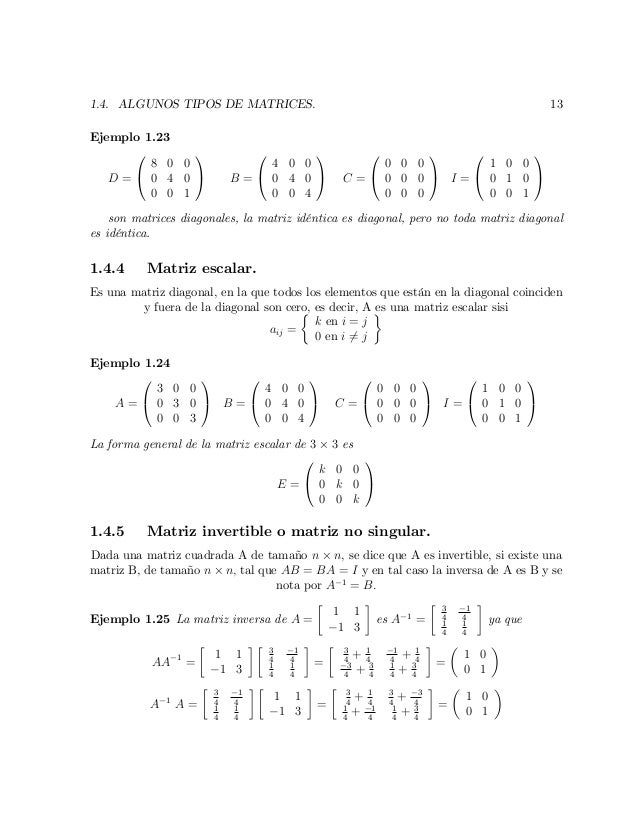 Son ejemplos de matrices los siguientes. Como se ha visto en los ejemplos anteriores el orden en que se realiza un producto matricial altera el resultado del mismo. Puesto que AB BA I A y B son invertibles siendo cada una la inversa de la otra MÉTODO DE GAUSS.