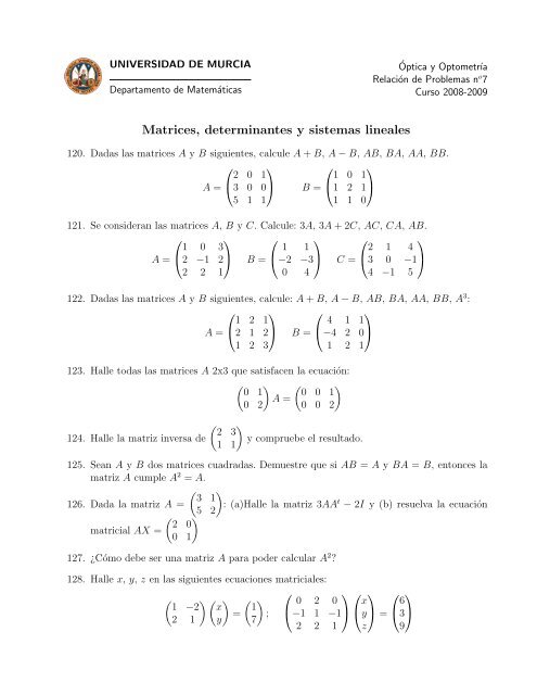 Matrices Determinantes Y Sistemas Lineales Universidad De Murcia
